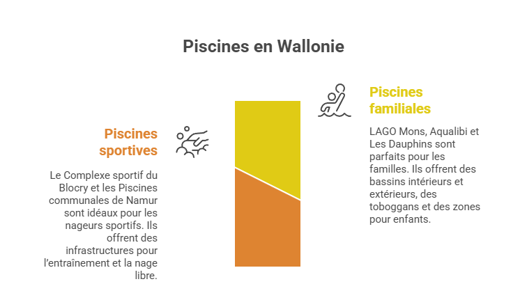 La Wallonie propose de nombreuses piscines publiques et centres aquatiques, adaptés aussi bien aux familles qu’aux nageurs sportifs. Voici quelques exemples reconnus.